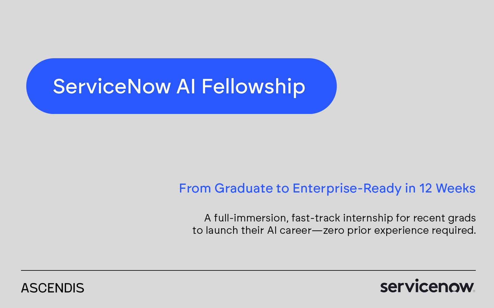 The Fellowship is the latest move in Ascendis’ growing ServiceNow AI practice, led by Elie Alam. The program is aimed at recent graduates who want to break into one of the most in-demand fields in tech—combining AI, automation, human-centered design, and real client delivery experience.